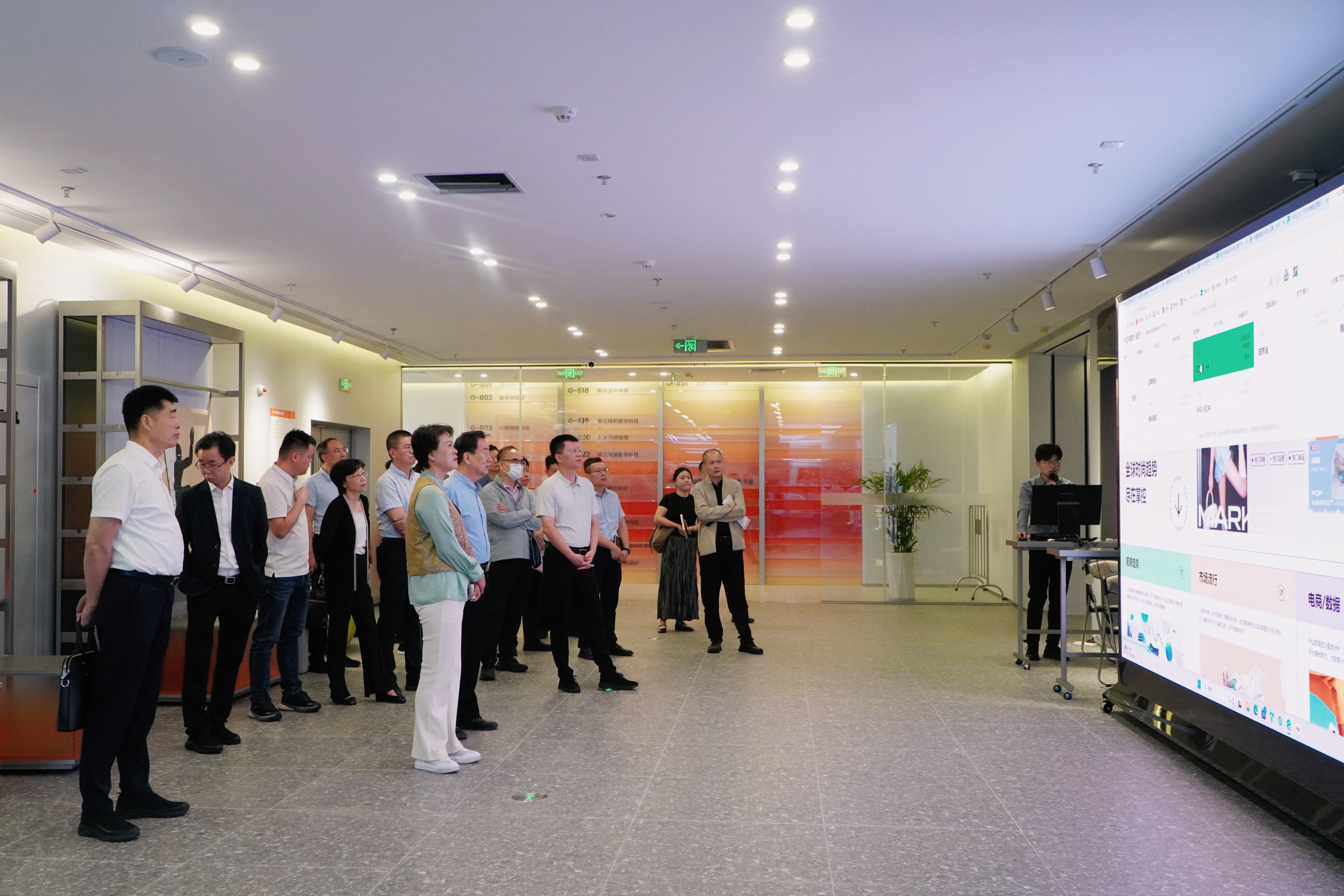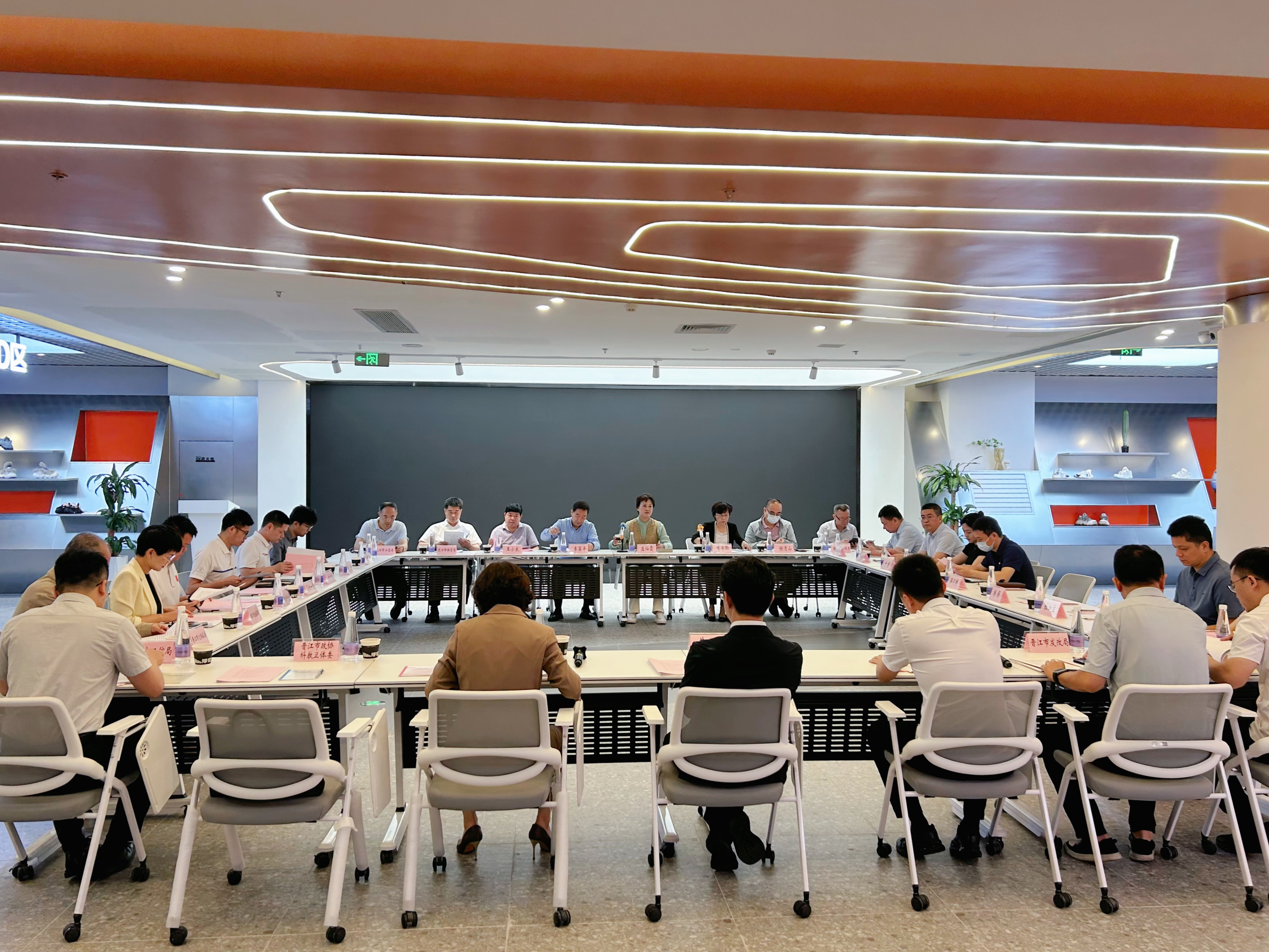 调研组深入“设界·运动时尚(全球)创新中心”,实地调研全球时尚产业大脑、流行趋势图书馆、IP赋能中心、AI设计赋能中心、全球面辅料供应链赋能中心、产学研及设计实训基地等12大空间业态,并就调研主题与晋江市有关部门、企业代表等座谈。